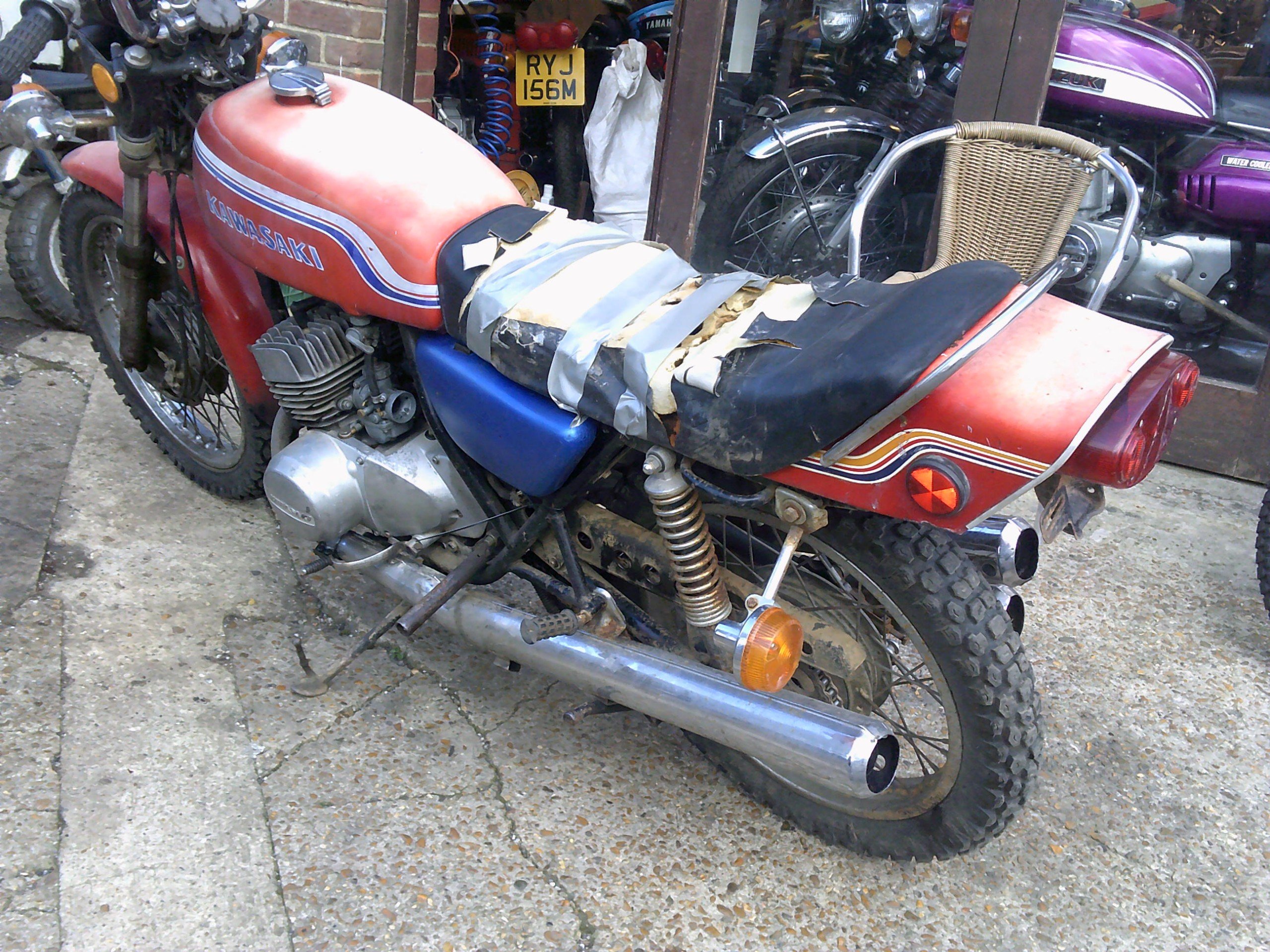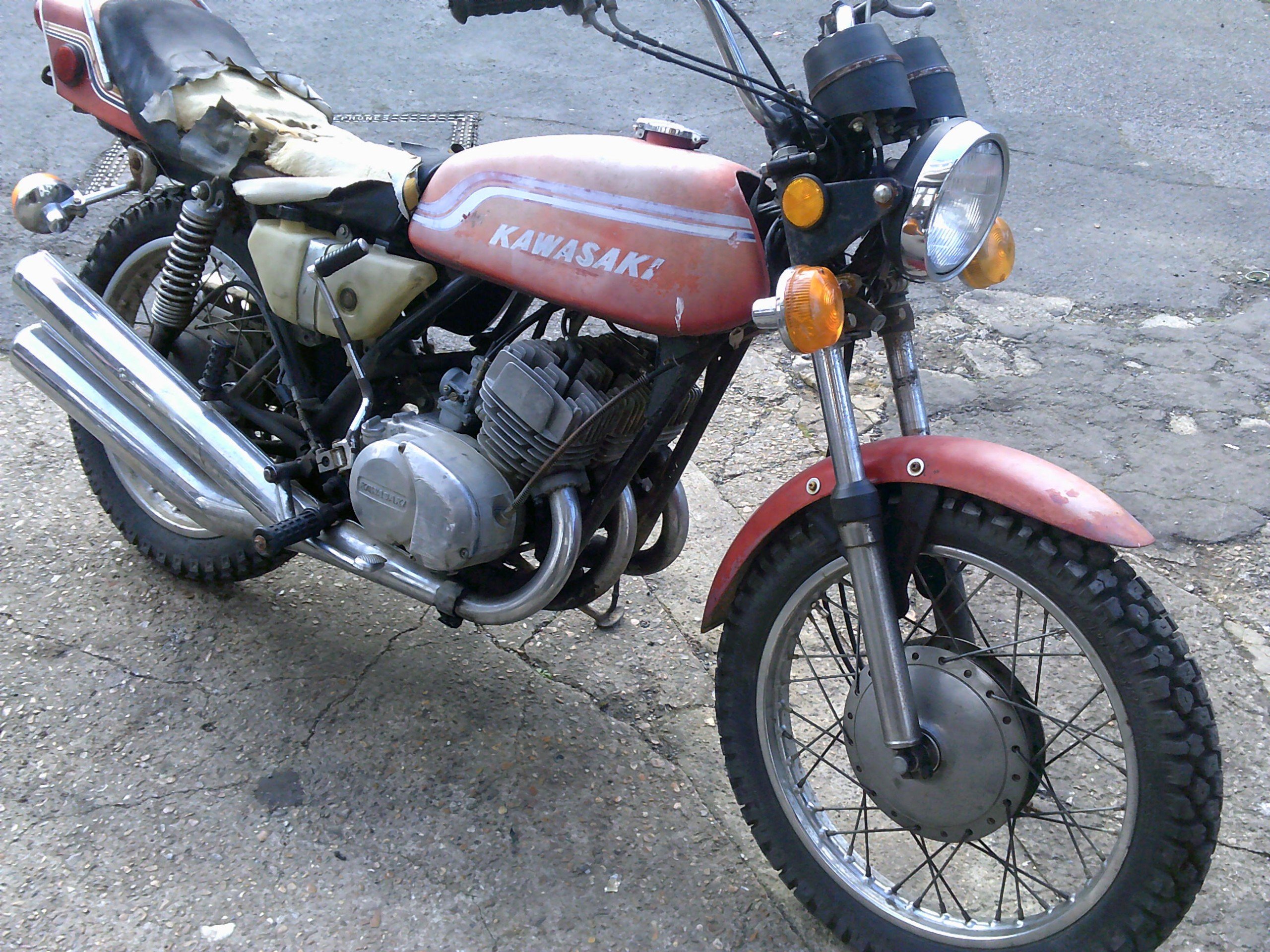 just in from the USA 1971 Kawasaki S2 350 mach 3 2 stroke triple in original condition just right for a light resto project, can be uk reg for £55, sold as a non runner but does fire, we can deliver