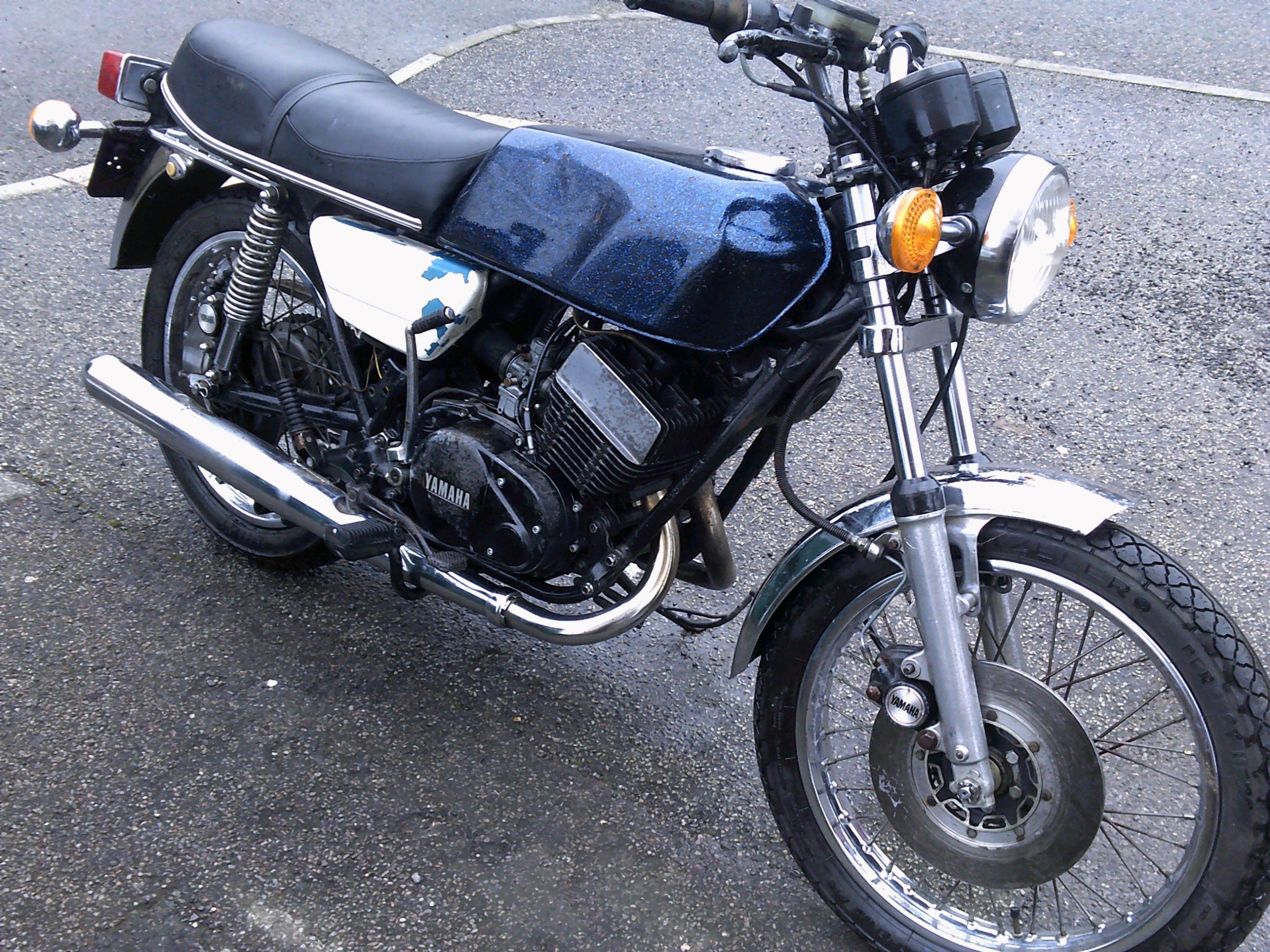 Just arrived in from germany a 1976 yamaha RD250 2 stroke twin with 45,000km on the clock so under 30,000 miles been dry stored for a while so needs recommission, great project of one of the best model Rd s , sold as a non runner ,can be uk reg for £55 ,we can help with that and we deliver.